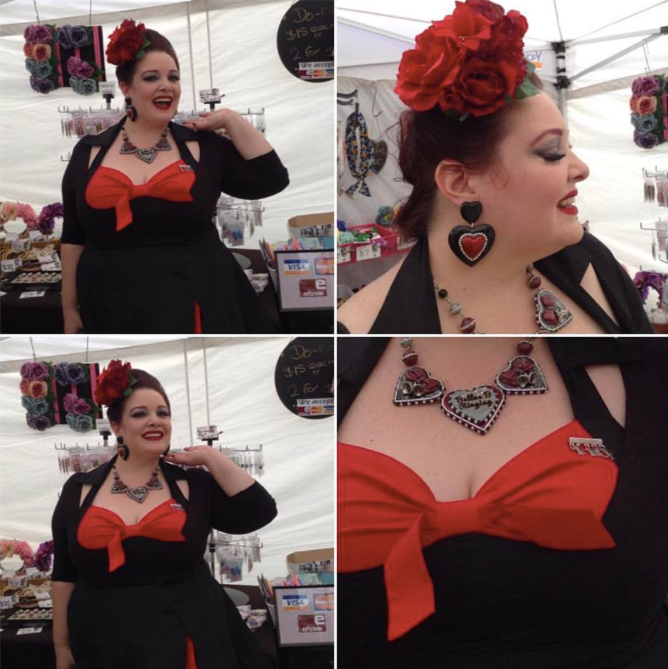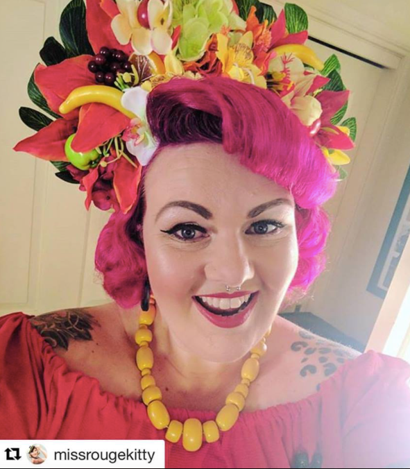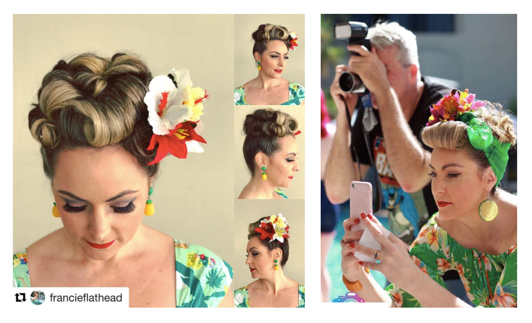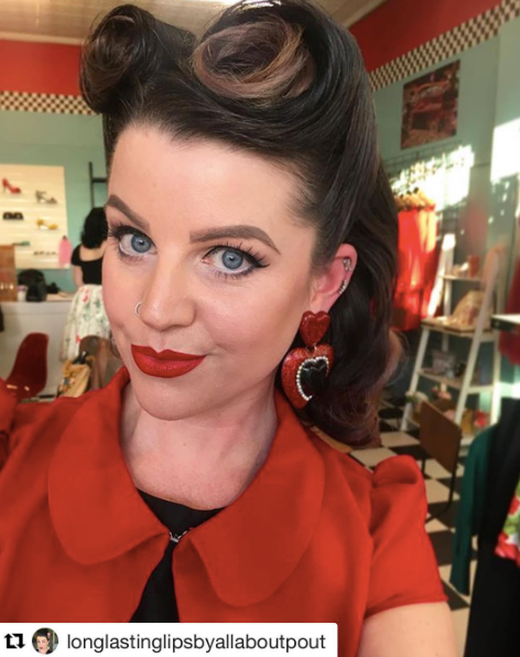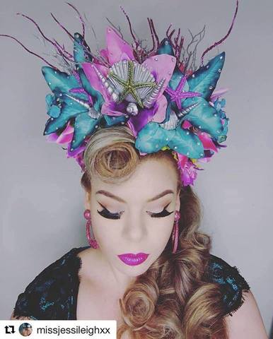 She is currently featured wearing Missy’s magnolia dream hairflower in red Shooting star - double star brooch Carmen hoops ( coming soon)